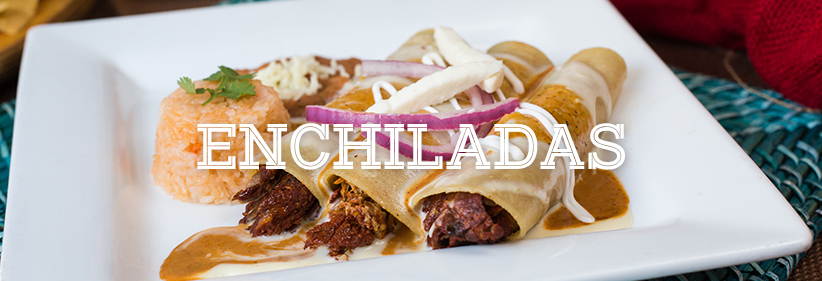 Flour tortilla filled with shredded chicken or ground beef topped with guajillo red sauce, our classic sauce and sour cream. Served with a side of rice, beans, lettuce.