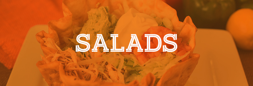 A crispy flour tortilla bowl filled with shredded lettuce, topped with your choice grilled chicken, steak or shrimp, sauteed onions, bell peppers, pico de gallo and sour cream.