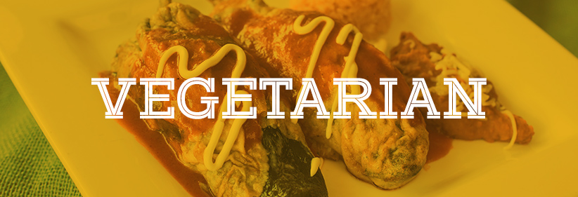 Two deep fried poblano peppers filled with cheese. Served with rice, beans and sour cream drizzle.